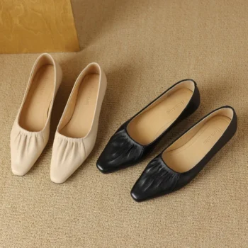 Elegant Women’s Leather Square Toe Slip-On Flats