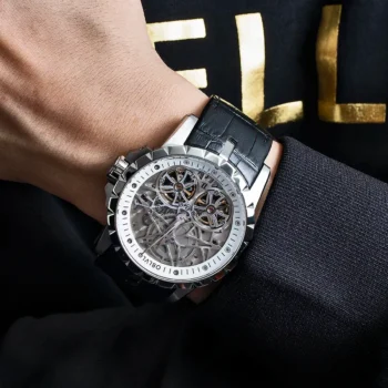 Luxury Rose Gold Skeleton Automatic Watch with Brown Leather Strap
