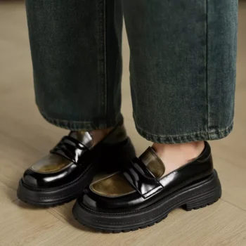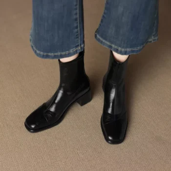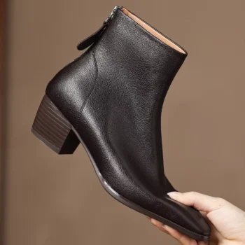 Women’s Sheepskin Leather Patchwork Ankle Boots – 5cm Heel, Back Zip
