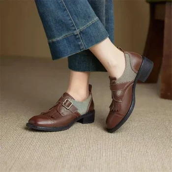 Women’s Genuine Leather Lightweight Slip-On Pumps with Round Toe and Thick Sole