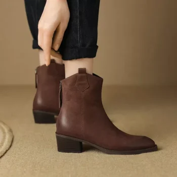Genuine Leather Pointed Toe Ankle Boots for Women – Autumn Chic