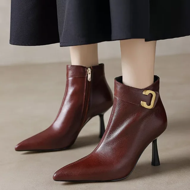 Our boots are built with attention to detail and high-quality craftsmanship. Made from supple, genuine leather, they mold comfortably to your feet while providing durability for long-lasting wear. The pointed toe adds a sharp, stylish finish, while the thin stiletto heel—measuring approximately 4 inches—gives you a dramatic boost in height and confidence. These ankle boots are lightweight, making them easy to wear for extended periods without compromising on elegance.