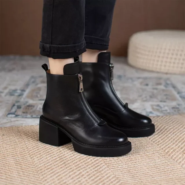 The clean, concise design with a sleek front zipper closure ensures a snug yet comfortable fit, while the sturdy thick heel (approx. 2.5 inches) provides all-day stability without sacrificing style. Whether you’re navigating a busy workday or enjoying a night out, these boots deliver both polish and practicality.