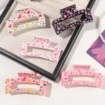 6pcs Heart Print Hair Claw Clips for Women