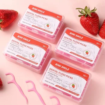 Strawberry Bamboo Charcoal Dental Floss Sticks – Ultra-Fine Disposable Picks