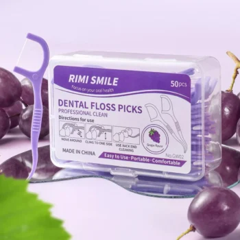 200pcs Grape Flavored Dental Floss Picks – Fresh Breath Teeth Cleaning Sticks