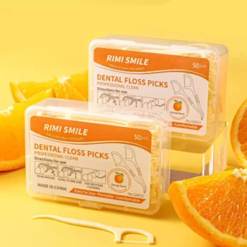 50pcs Orange Scented Dental Floss Picks – Plaque & Food Removal Cleaning Sticks