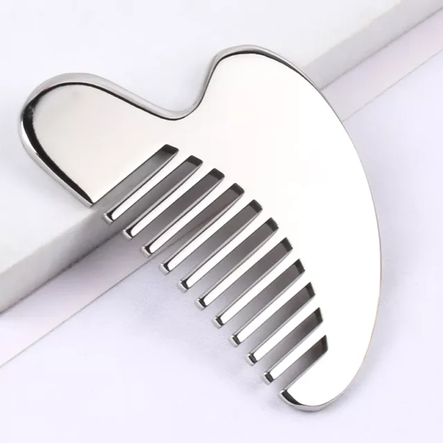 The smooth edges and ergonomic heart shape make this Gua Sha tool easy to grip and glide, giving you full control over your massage pressure and motion. The comb-style teeth are ideal for head massages, gently stimulating blood flow and relaxing scalp muscles. You can also use the curved sides for facial sculpting or to target pressure points on the neck, shoulders, and chest. Its stainless steel material stays cool to the touch and is easy to clean—perfect for regular use.