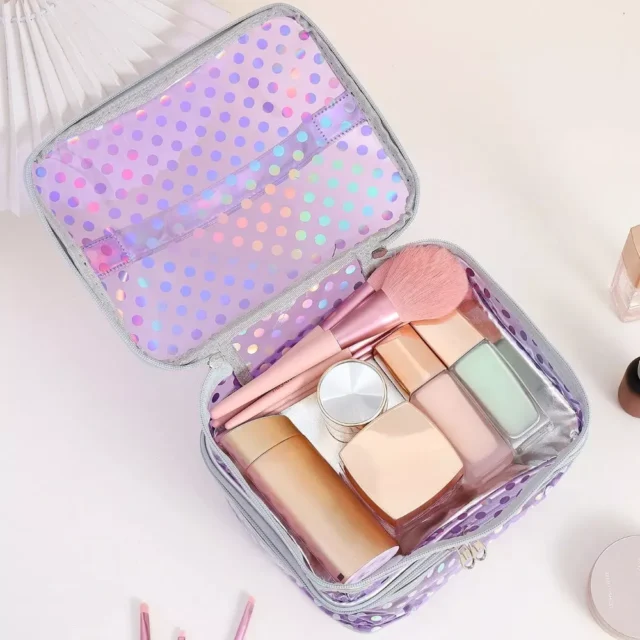 Say goodbye to messy makeup bags and hello to effortless organization with this chic and practical Portable Polka Dot Makeup Bag. Designed for makeup lovers on the move, this stylish cosmetic case combines function, fashion, and convenience all in one. Whether you’re jet-setting across the globe or getting ready at home, this spacious, double-layer makeup bag makes staying polished easier than ever.