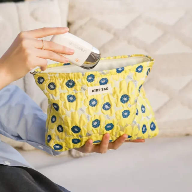 Looking for a stylish yet practical cosmetic bag that keeps all your beauty essentials organized while you’re on the go? Look no further than this vibrant yellow cosmetic bag, designed for women who love convenience and style. Whether you’re traveling, commuting, or simply need a reliable storage solution, this bag has it all. With its large capacity, you can store everything from makeup and skincare to toiletries and more!