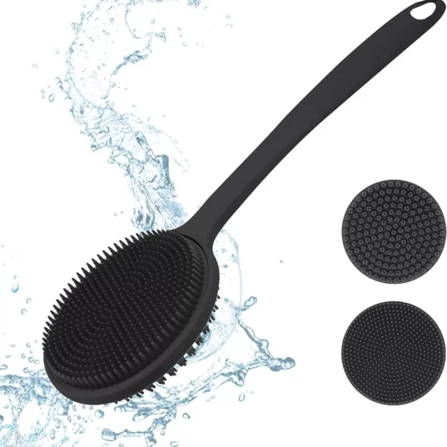 Long Handle Silicone Bath Brush for Back Scrubbing & Full Body Exfoliation