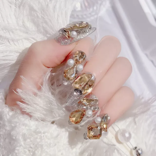 Elevate Your Nail Game with Luxury Glitter Crystal False Nails