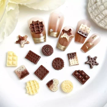 3D Chocolate Biscuit & Cookie Nail Charms – Cute Resin Waffle Decorations (50-200pcs)