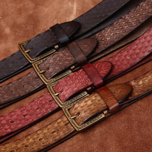 Step up your style with this high-quality men’s leather belt, crafted from pure Italian cowhide. At 1.5 inches wide, it offers the perfect balance of rugged durability and refined design. Featuring a solid brass buckle and detailed carving, this belt is built to complement jeans, workwear, or even a sharp casual look. It’s not just an accessory—it’s a statement piece that elevates your outfit with effortless confidence.