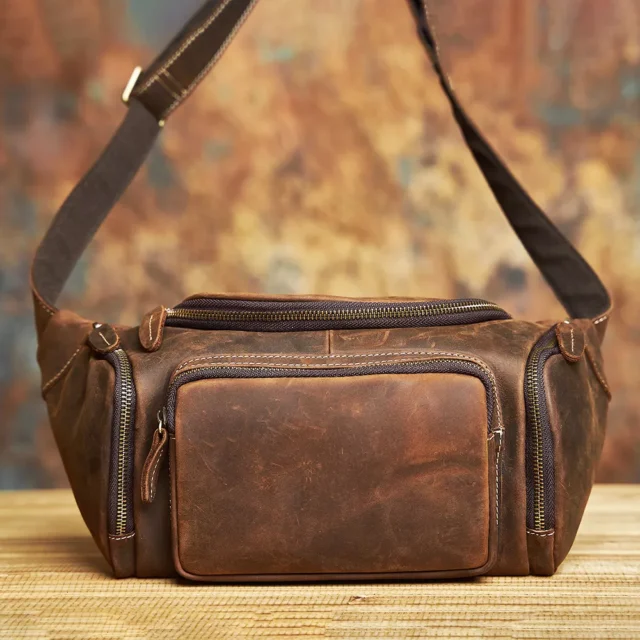 This leather waist and chest bag blends rugged character with practical design, making it a must-have accessory for men who want to keep their essentials close without sacrificing style. Upgrade your everyday carry and enjoy the confidence that comes with genuine craftsmanship. Add this versatile bag to your collection today.