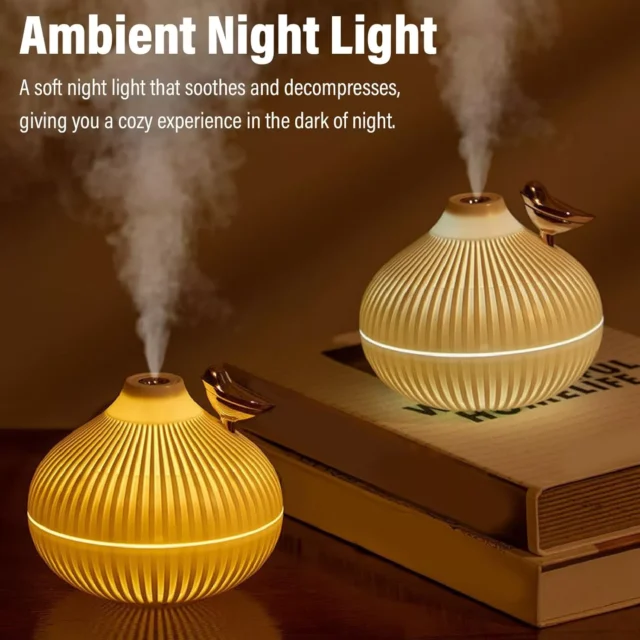 With a generous 10.1 oz (300ml) water tank, this ultrasonic humidifier delivers consistent, cool mist for up to 8 hours. It’s powered by USB, so you can plug it into your laptop, power bank, or phone charger for easy use anywhere. The whisper-quiet operation ensures undisturbed sleep or focus, while the warm ambient LED night light creates a soothing glow – ideal for bedrooms, baby nurseries, or cozy corners at night.