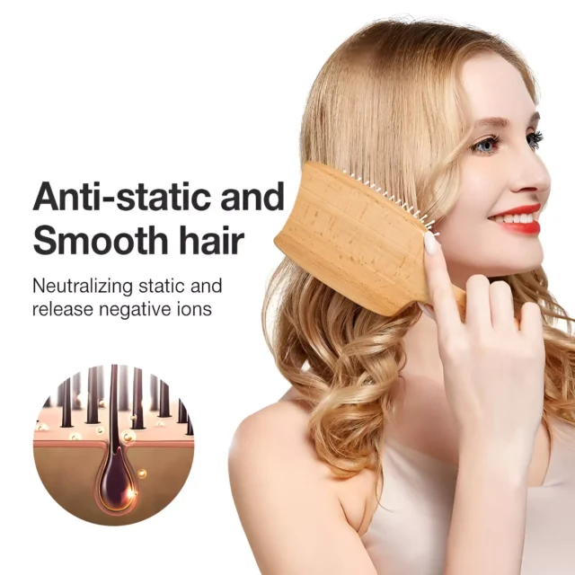 • Gentle on Hair – Smooth wooden bristles detangle without tugging or breaking strands