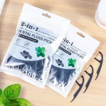 Mint Bamboo Charcoal Dental Floss Sticks – Ultra-Fine Disposable Toothpicks