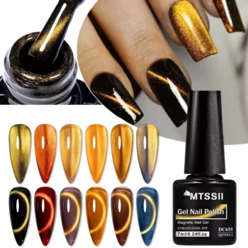 7ml Magnetic Cat Eye Gel Polish – Golden Gems Holographic Effect