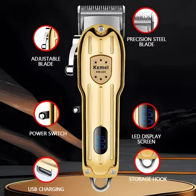 What makes our Electric Hair Clippers stand out from the rest is the combination of powerful performance, convenience, and versatility. With its ergonomic and cordless design, this trimmer allows you to groom with freedom and ease. The rechargeable battery gives you long-lasting power, and the multiple length settings offer customizable results for your preferred style. Whether you’re trimming, shaving, or styling, these clippers guarantee professional-quality results in the comfort of your home.