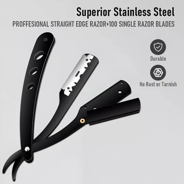 Built from high-quality stainless steel, the razor is designed to last and resist rust, making it perfect for both at-home use and professional barber shop settings. Its portable folding design adds a layer of safety while providing a comfortable grip for better control. No sharpening needed – just replace the blade when it gets dull for a fresh, hygienic shave.