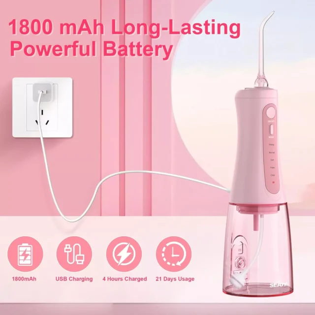 • 5 Flossing Modes: Includes Child (40 PSI), Pulse (40–120 PSI), Soft (60 PSI), Normal (100 PSI), and Strong (120 PSI) for customizable cleaning.