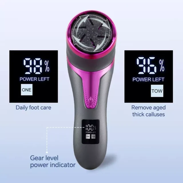 • Built-In Vacuum: Collects dead skin while you file, preventing mess and making cleanup easy.