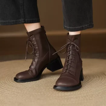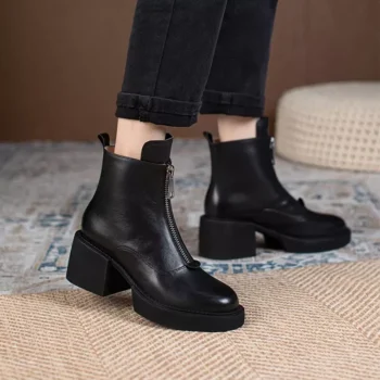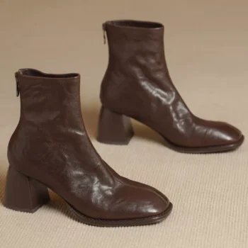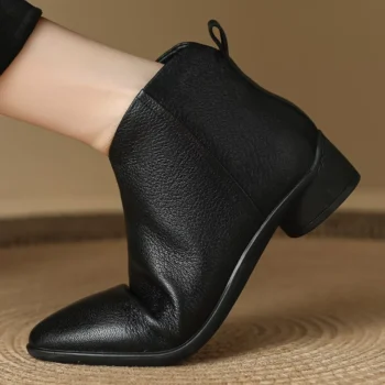Genuine Leather Retro Ankle Boots for Women – Thick Heel Office Style