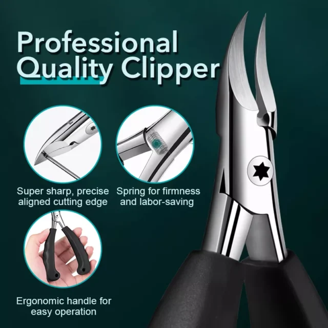 • Precision Cutting: The sharp, curved blades provide clean, smooth cuts, reducing the risk of jagged edges and further nail issues.