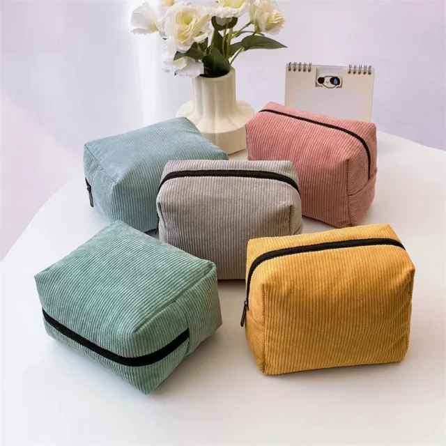 Striped Corduroy Makeup Bag – Large Capacity Travel Cosmetic Organizer