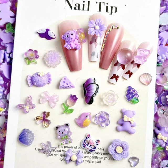 These adorable nail decorations are best used on dry polish, gel, or acrylic nails. Just apply a drop of nail glue or top coat, place your charm, and seal with a clear finish. Ideal for birthdays, holidays, festivals, or when you simply want to treat yourself to some stylish flair. They’re also perfect for scrapbooking, phone case decoration, or any craft that needs a little purple pop!
