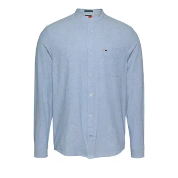 Tommy Hilfiger Jeans Men’s Light Blue Linen-Cotton Mandarin Collar Shirt