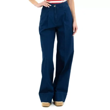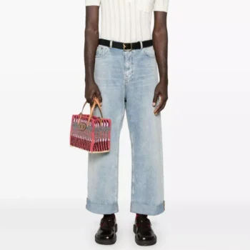 Valentino High-Waisted Wide-Leg Denim Pants with Turn-Up Hems