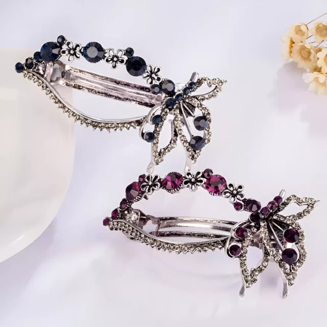 These hairpins are made from high-quality zinc alloy and feature intricate detailing. The heart hair clip measures approximately 2.4 x 1.25 inches, while the butterfly pin is around 2.3 x 1.3 inches — the perfect size to stand out without overpowering your look. Lightweight at just 0.7 oz, they’re easy to wear all day without any discomfort. The shimmering crystals in soft purples and blues catch the light beautifully, adding a delicate sparkle to your hair.