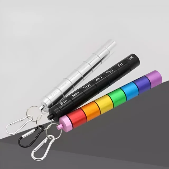 Unlike plastic alternatives, this pill box is crafted from premium aluminum, giving it a modern, minimalist look while ensuring maximum durability. It’s completely waterproof, with sealed compartments to safeguard your medication against moisture and spills. The secure twist-on lids keep everything in place, so you never have to worry about accidental openings in your bag or pocket.