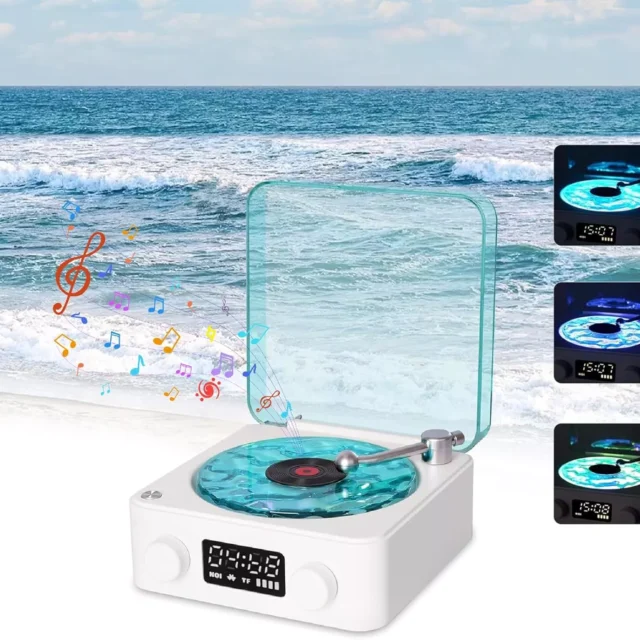 Whether you’re winding down for the night or setting the vibe for a cozy evening in, this speaker delivers a soft, balanced sound experience designed to soothe the mind. Just gently stir the retro-style tonearm and watch the water ripple turntable rotate, blending audio and visual relaxation into one enchanting experience. Add a touch of charm and tranquility to your bedroom, office, or reading nook with a speaker that feels as good as it sounds.