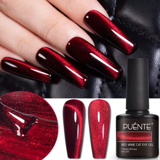Wine Red Cat Eye Magnetic Gel Nail Polish – Super Shiny Ruby Red UV Soak Off