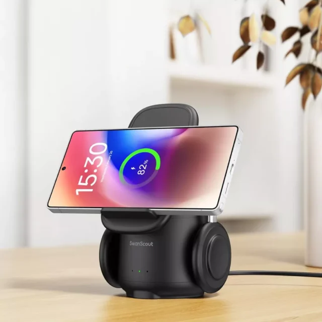 • 3-in-1 Design: Charge your phone, smartwatch, and earbuds all at the same time.