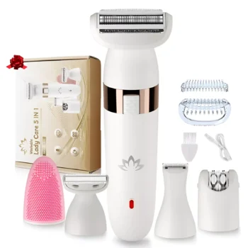 5-in-1 Women’s Electric Shaver Razor – Painless Bikini & Eyebrow Trimmer, Face & Body Hair Removal