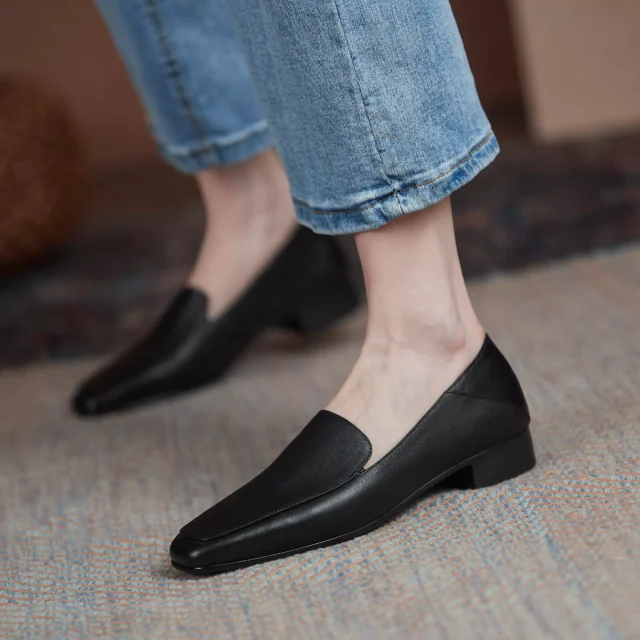 Women’s Genuine Leather Square Toe Slip-On Flats